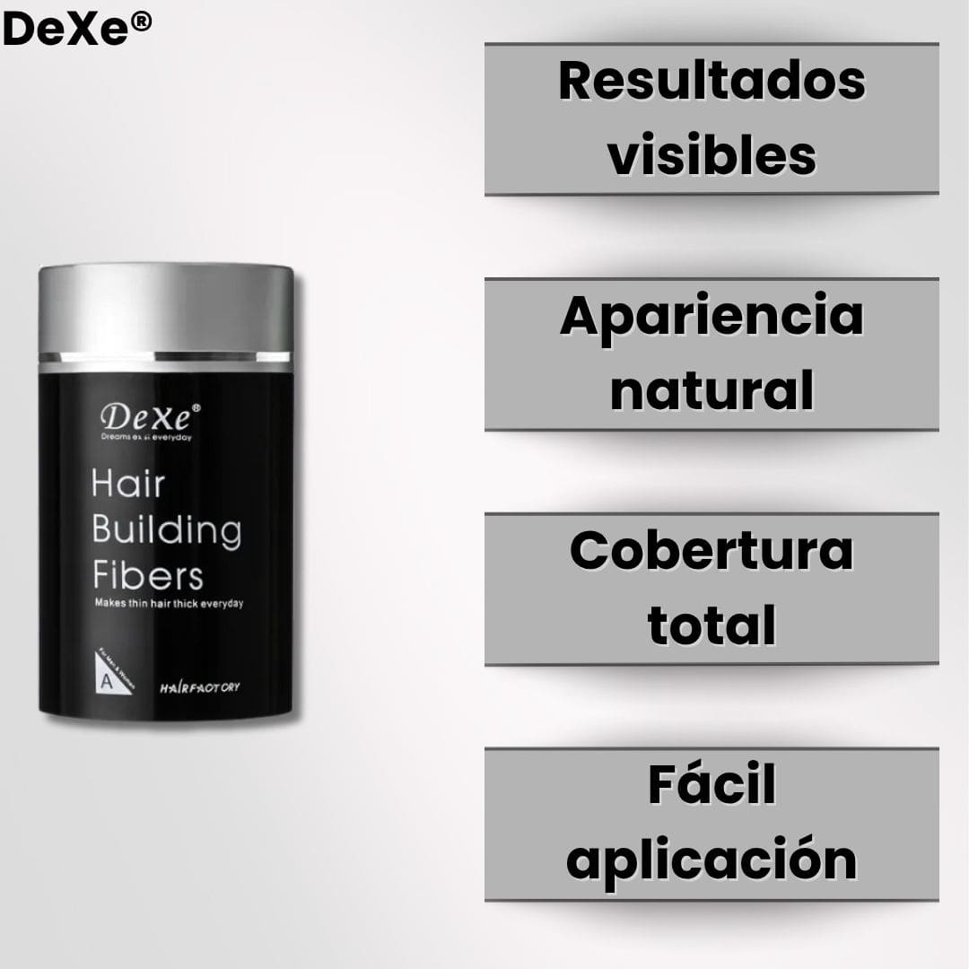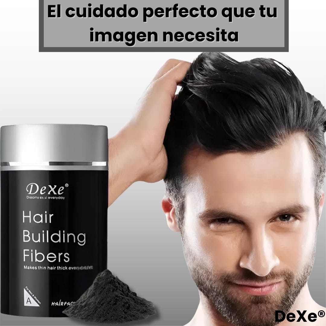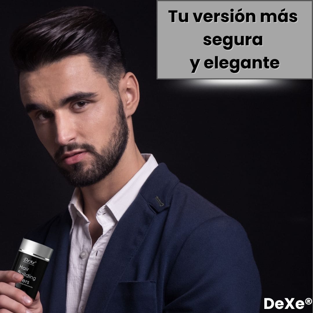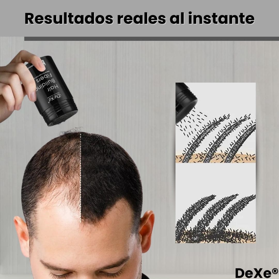 DeXe® utiliza microfibras de queratina cargadas electrostáticamente que se integran con tu cabello en cuestión de segundos.