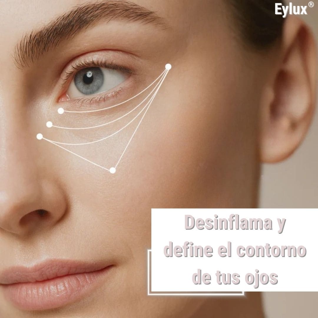 Eylux® está diseñado para estimular la microcirculación sanguínea en el contorno de ojos, ayudando a mejorar la oxigenación de la piel y una apariencia más revitalizada.