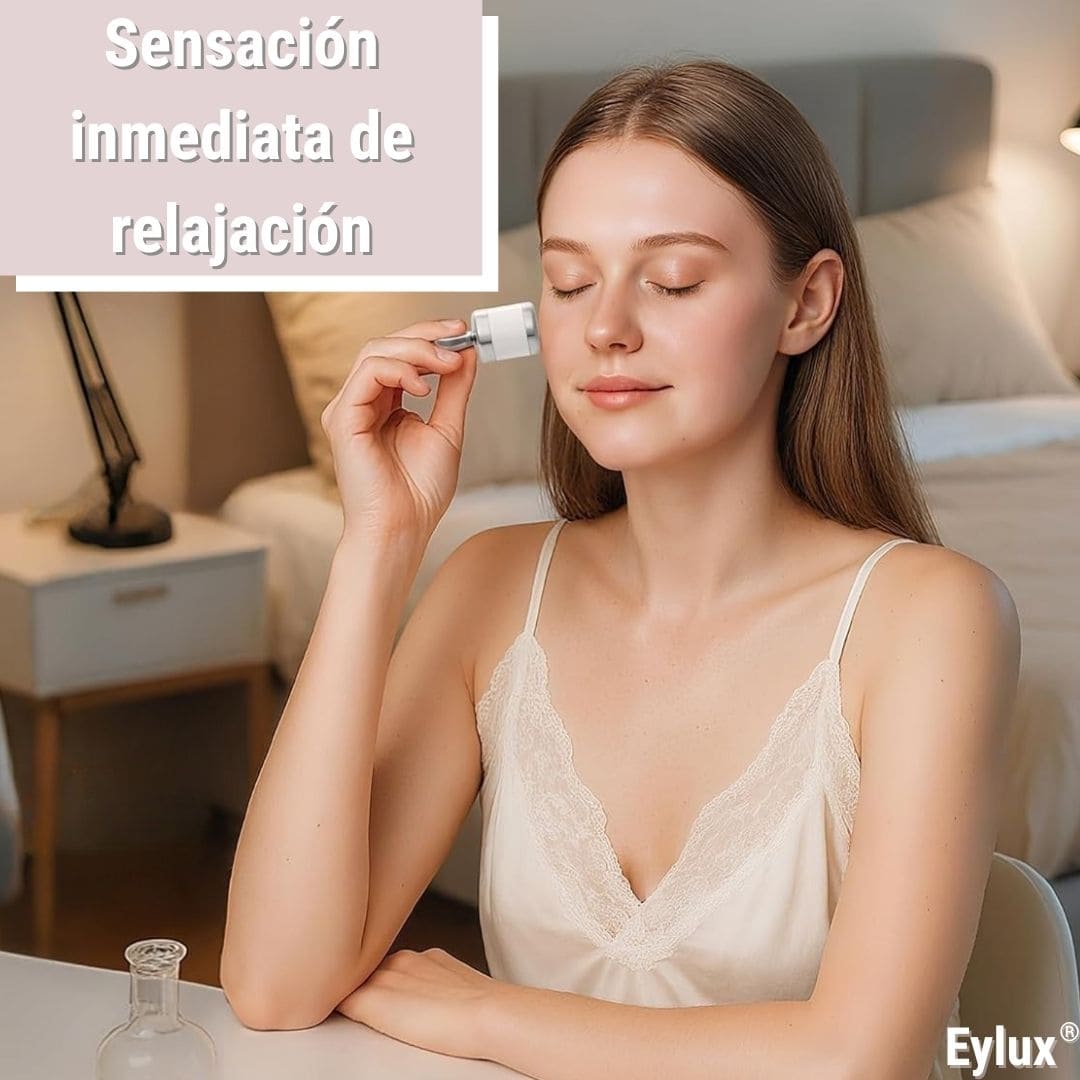 Eylux® está diseñado para relajar profundamente el contorno de ojos, liberando la tensión acumulada y aportando una sensación de descanso y bienestar.