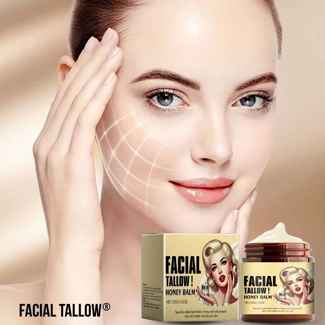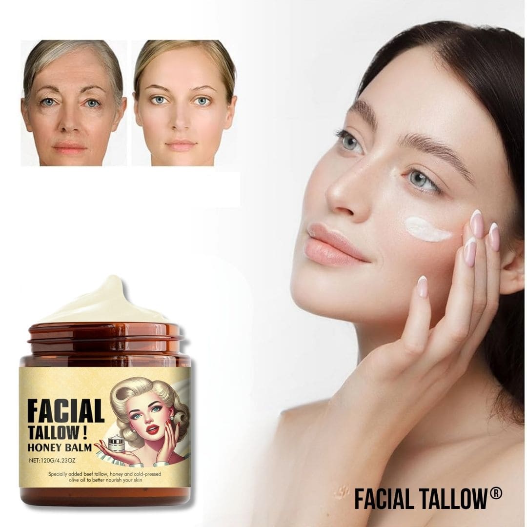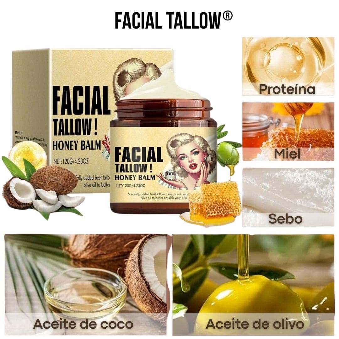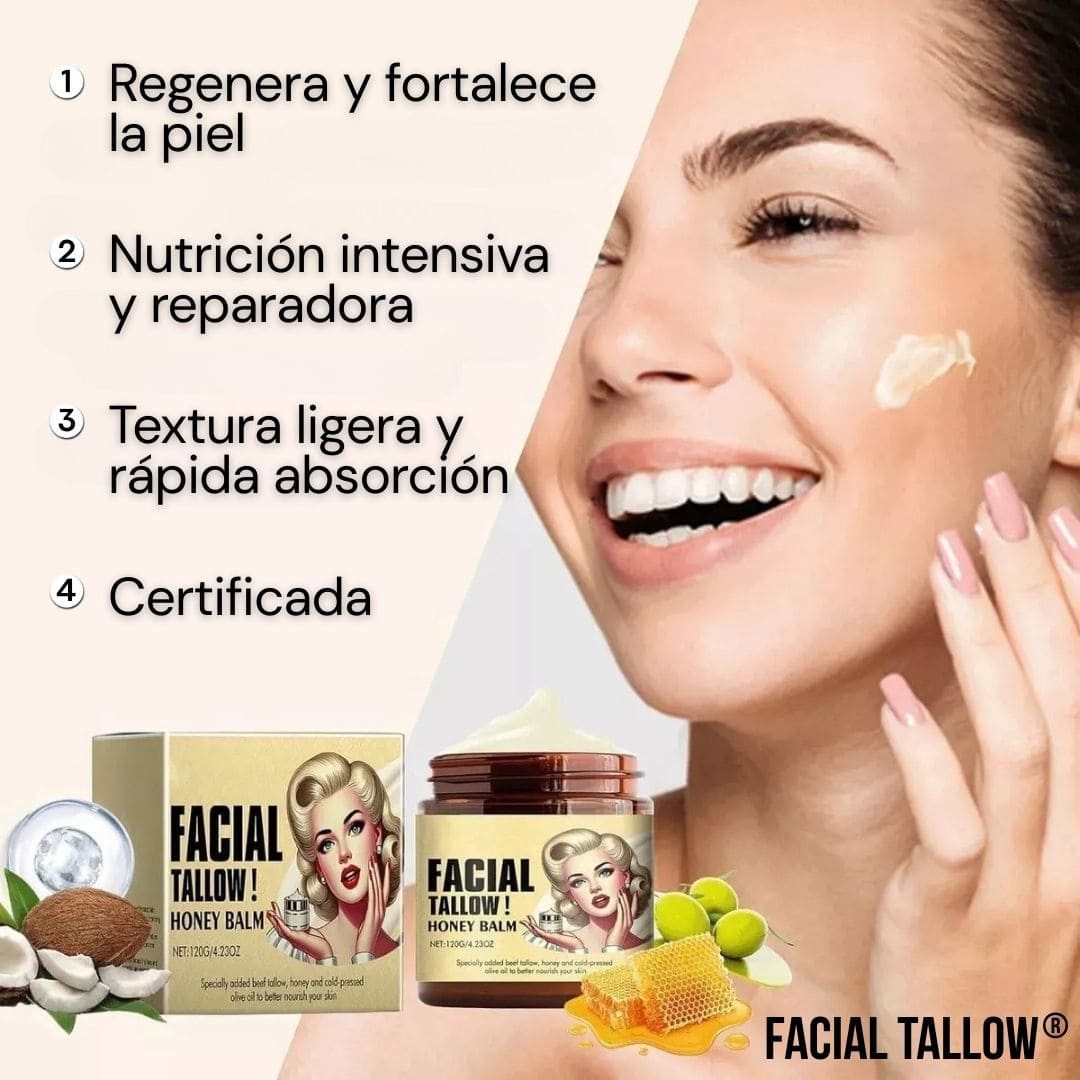 FACIAL TALLOW® reduce arrugas, manchas y flacidez desde adentro con ingredientes que tu piel reconoce: sebo natural, miel y vitaminas que restauran firmeza y brillo sin dañar.