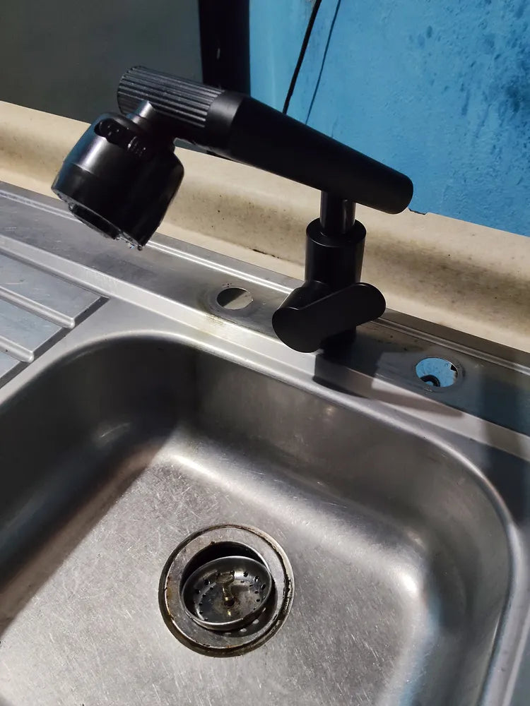 Con su sistema de giro completo y doble articulación, este grifo te da el control total del agua. Gira, ajusta y limpia como tú lo necesitas, sin complicaciones.