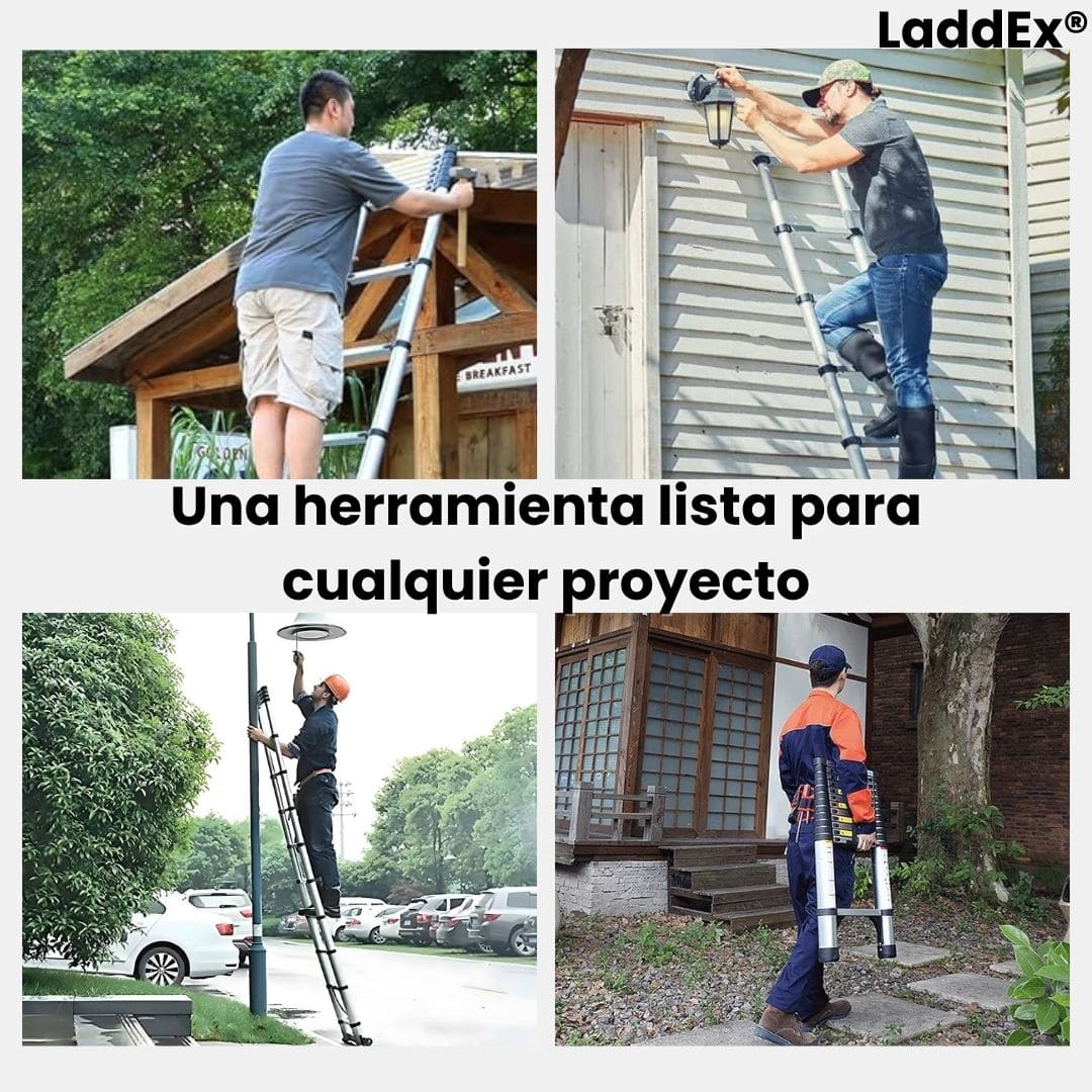 LaddEx® cuenta con un sistema telescópico con bloqueo por nivel, que te permite detenerla en la altura exacta que necesites. Puedes usarla a media extensión o completamente desplegada, según la tarea que realices.