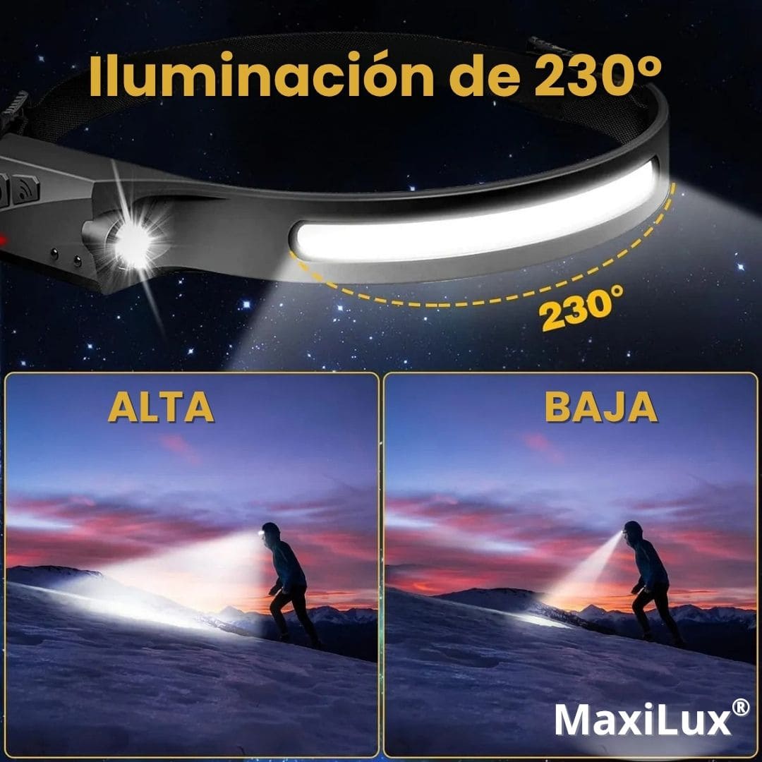 MaxiLux® te ofrece una iluminación amplia de 230°, potente y adaptable, que sigue tus movimientos y te permite enfocarte en lo que realmente importa: lo que tienes frente a ti.