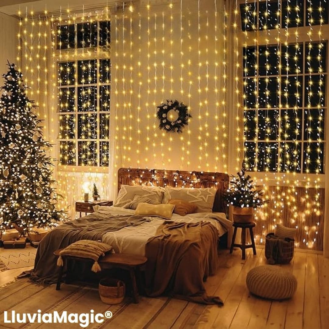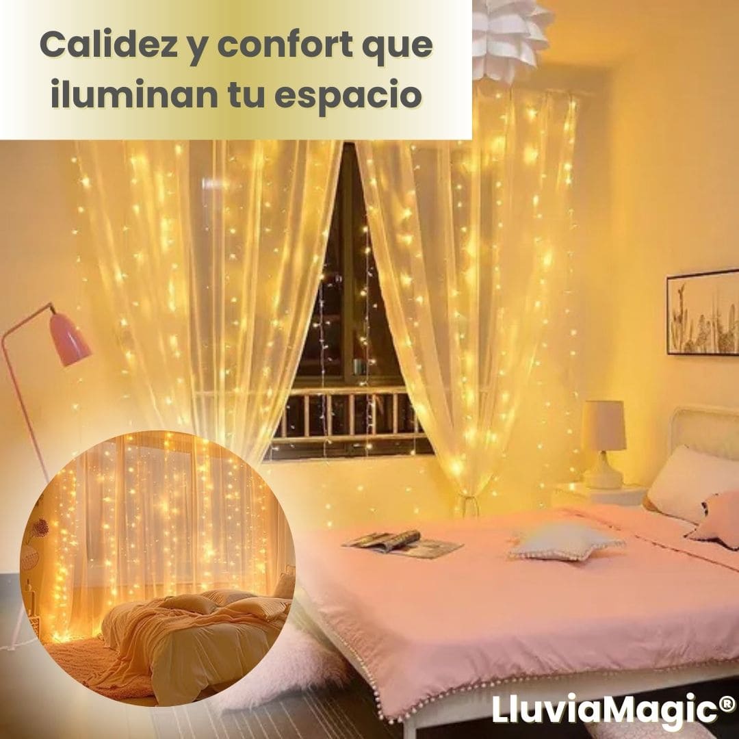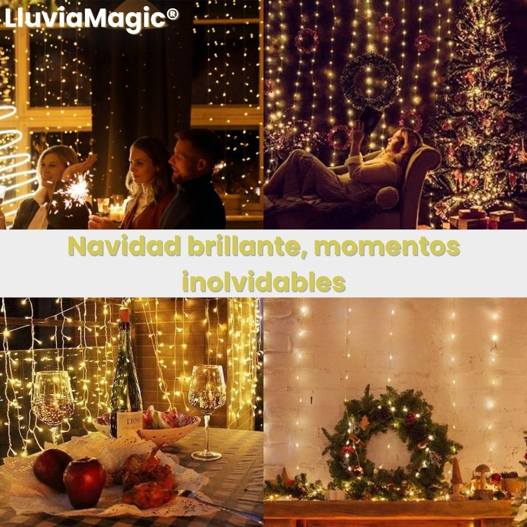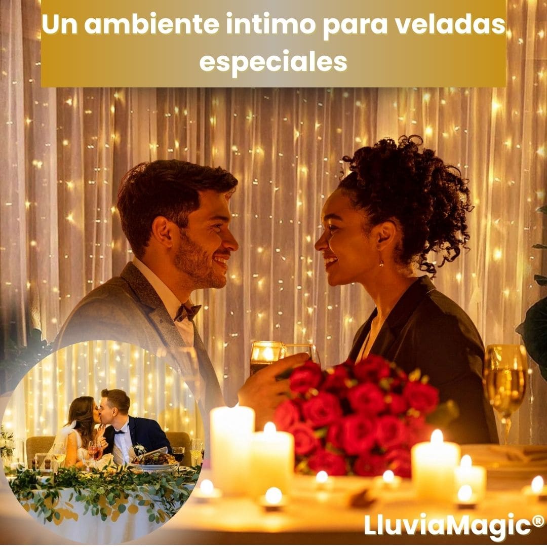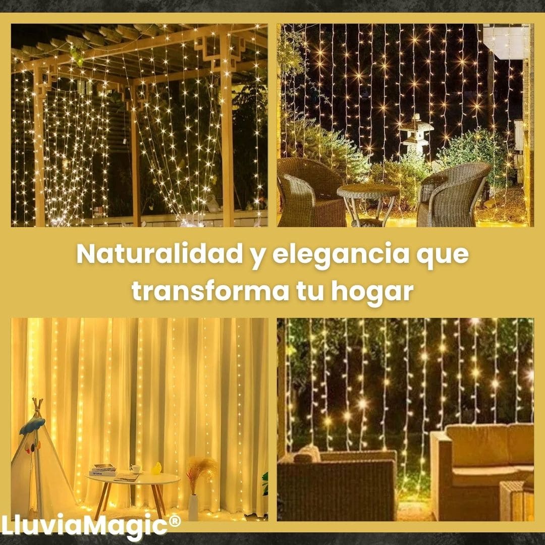 LluviaMagic® combina lo mejor de tecnología y practicidad, instalación rápida y un controlador que te permite personalizar cada efecto. Así, obtienes un ambiente cálido, elegante y envolvente que hace brillar tu hogar y convierte cualquier ocasión en un recuerdo mágico.