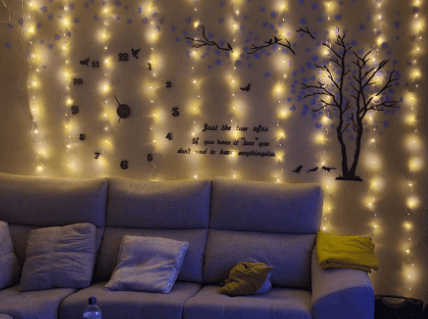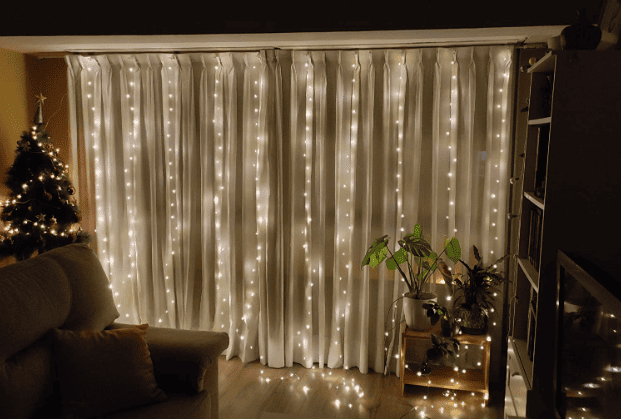 • Esta cortina de luces es realmente muy bonita. La compré hace un año para Navidad. Da un efecto cálido y mágico a la casa.