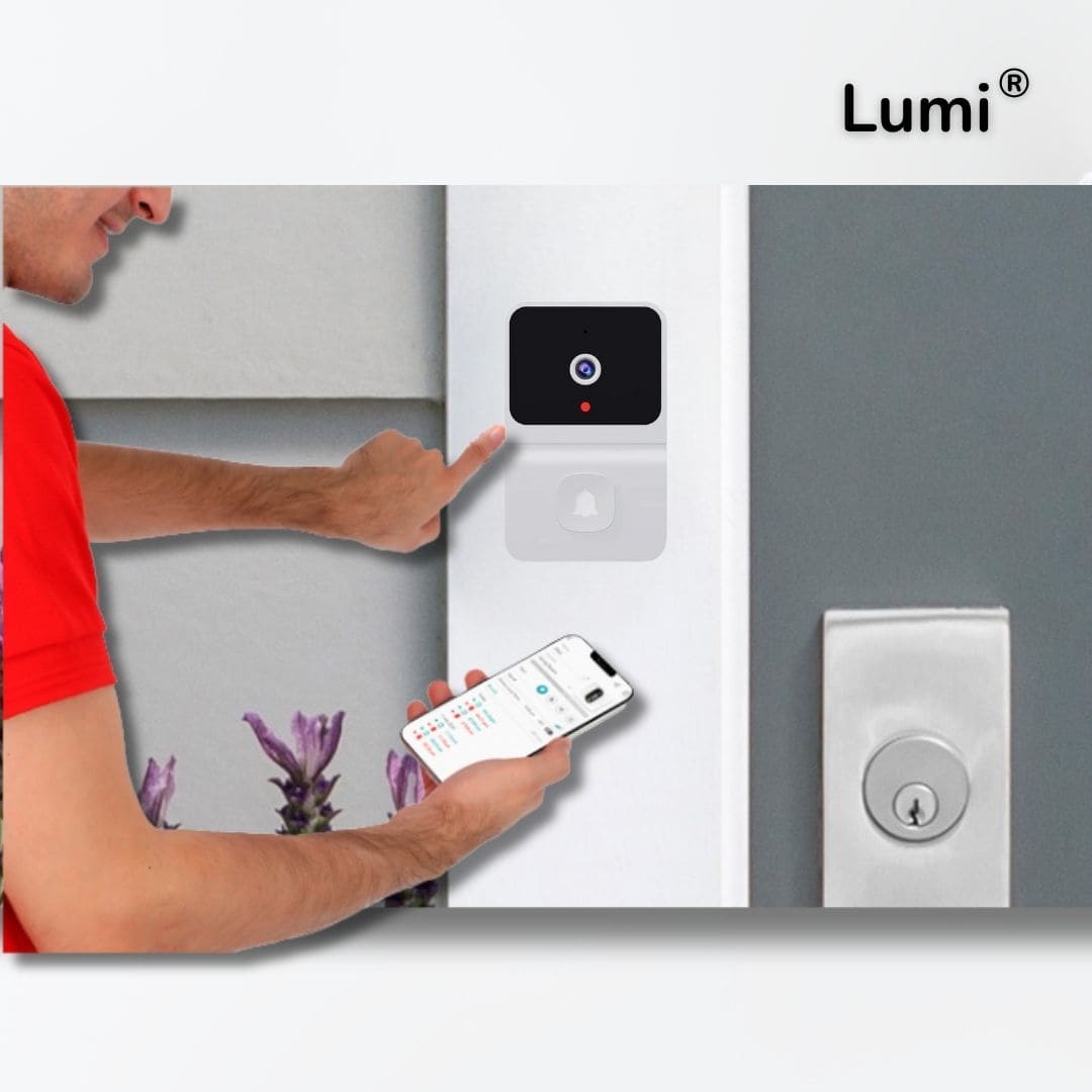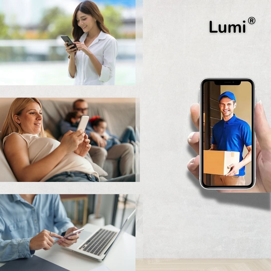 Lumi® te permite saber cuándo alguien está en la puerta sin necesidad de acercarse, con intercomunicador en tiempo real, lo que permite escuchar, ver y hablar con quien esté en la puerta.