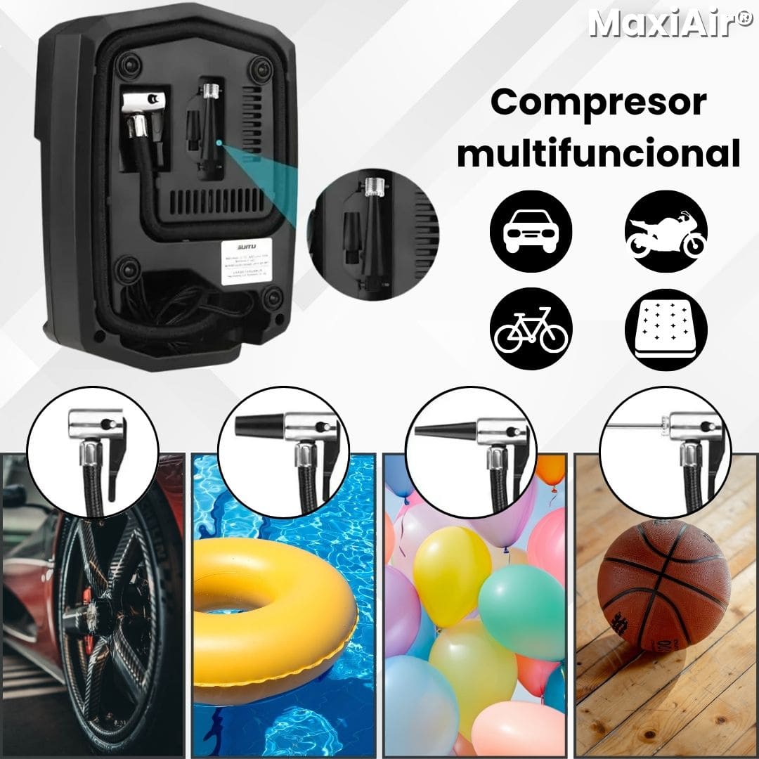 MaxiAir® también mantiene con la presión perfecta las llantas de tu moto, bicicleta e incluso balones y juguetes inflables.