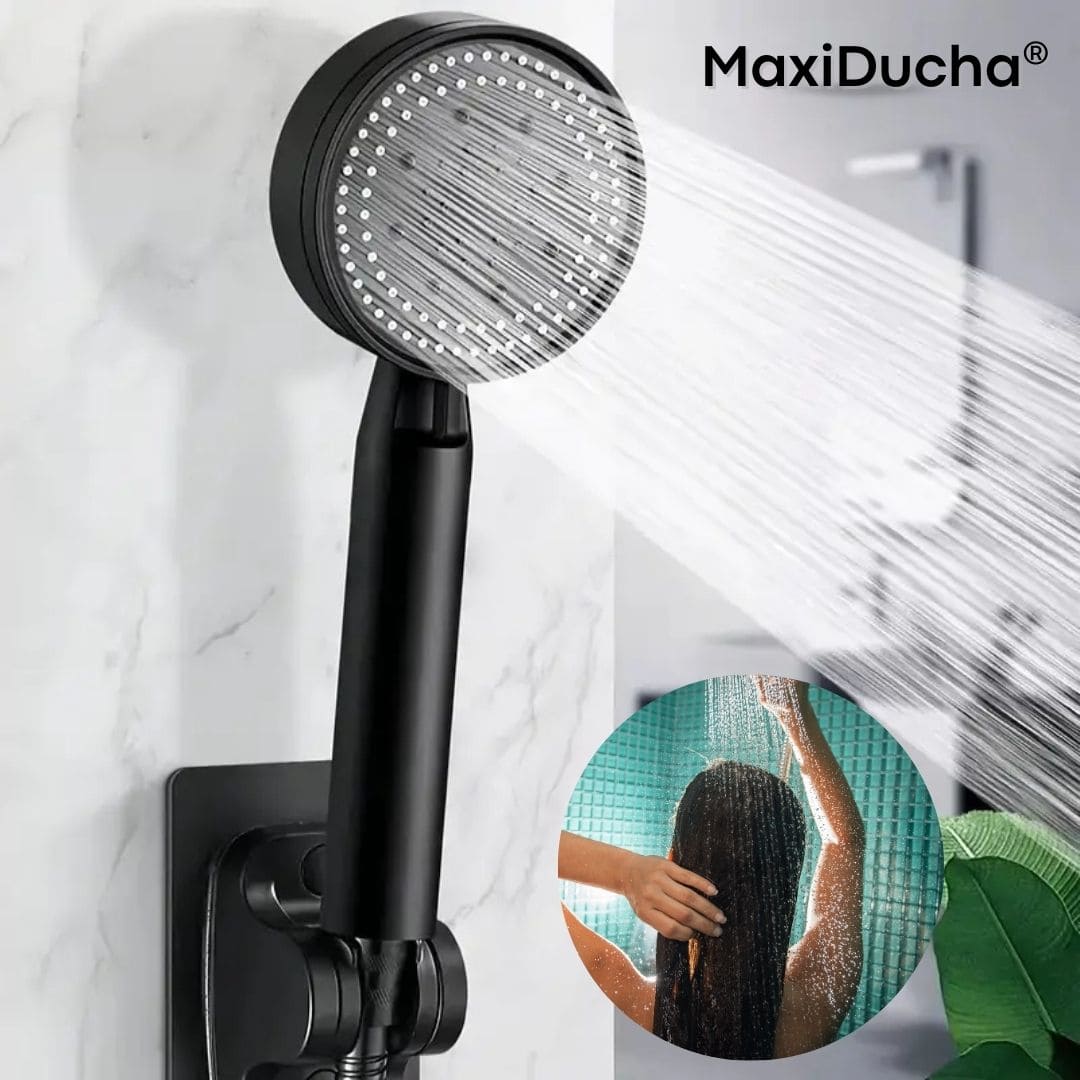 MaxiDucha® no solo luce bien: optimiza la presión del agua, evita obstrucciones con sus boquillas de silicona y te da control total gracias a su estructura.