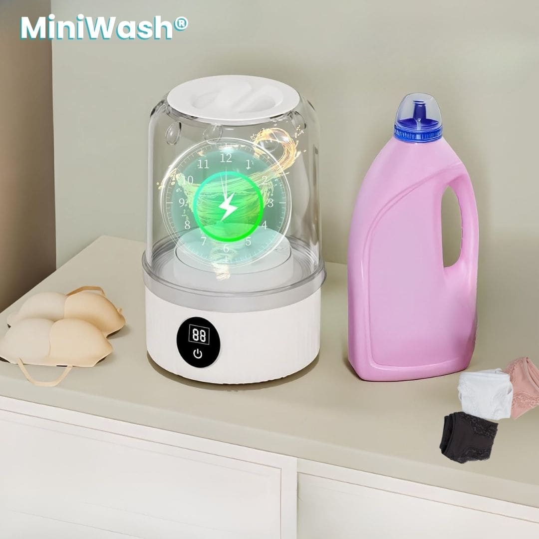 Cada ciclo de lavadora grande consume litros de agua y energía, incluso cuando solo quieres lavar una o dos prendas. MiniWash® es eficiente, práctica y diseñada para reducir gastos sin sacrificar limpieza ni comodidad.