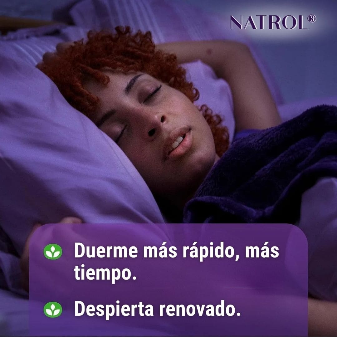 Natrol® actúa como un aliado natural que le recuerda a tu organismo cuándo es momento de relajarse. Reduce el impacto del estrés en tu sueño, ayudándote a soltar la tensión y encontrar la calma necesaria para descansar de verdad.