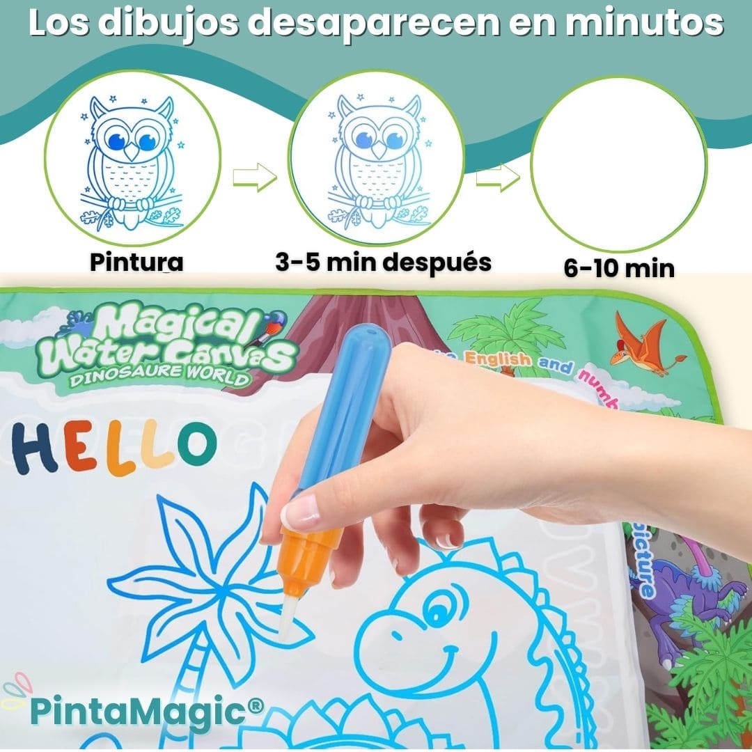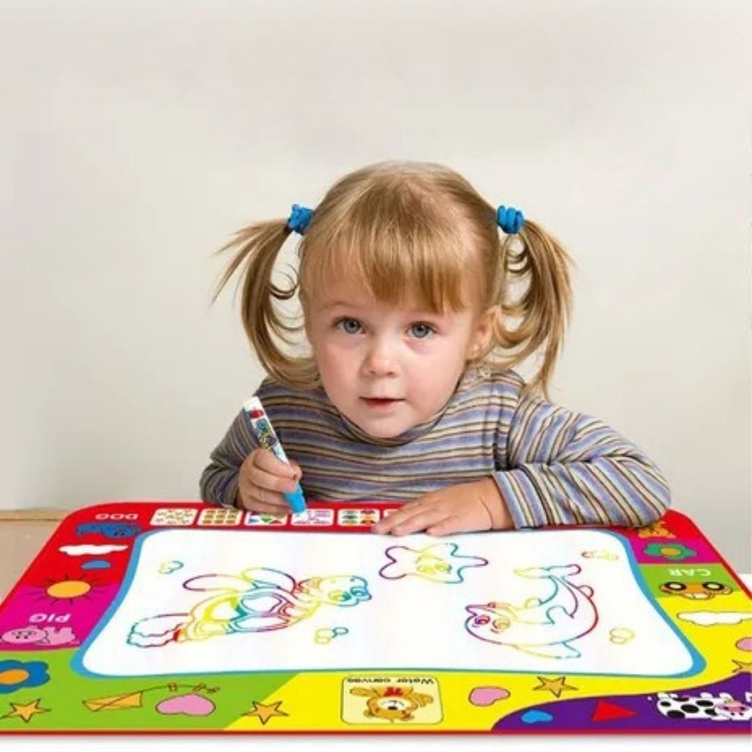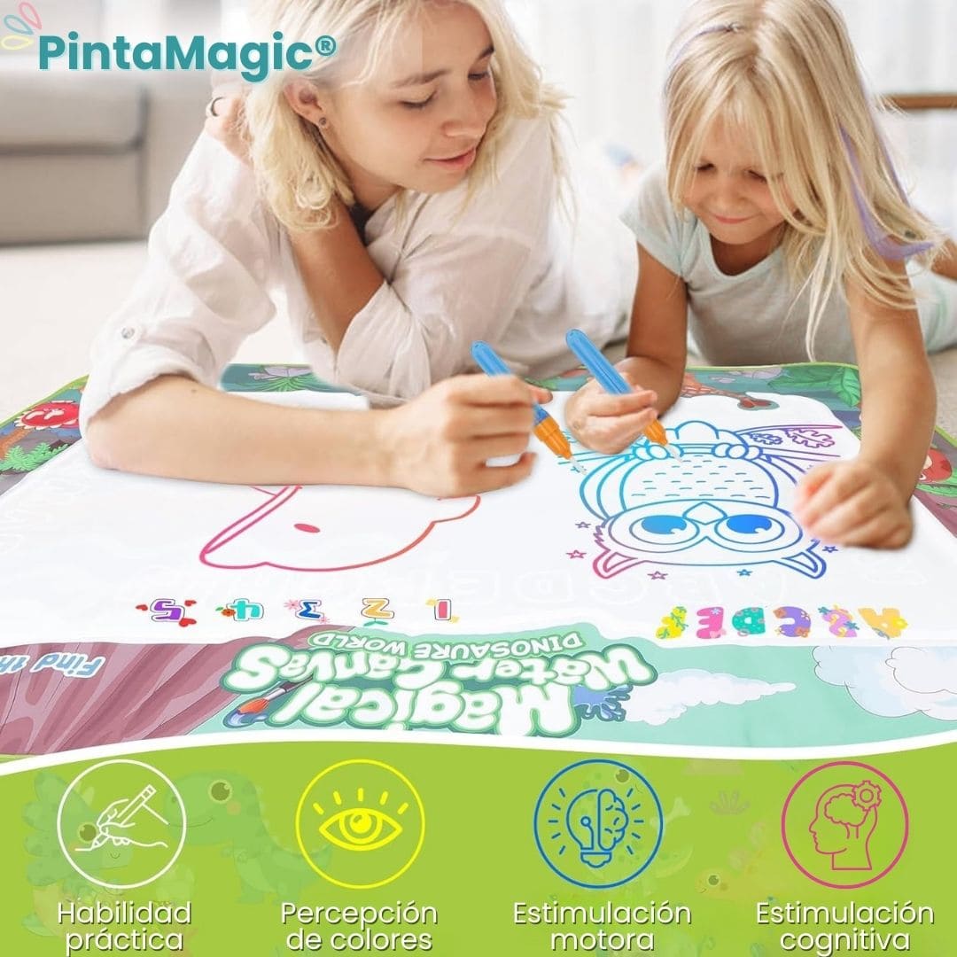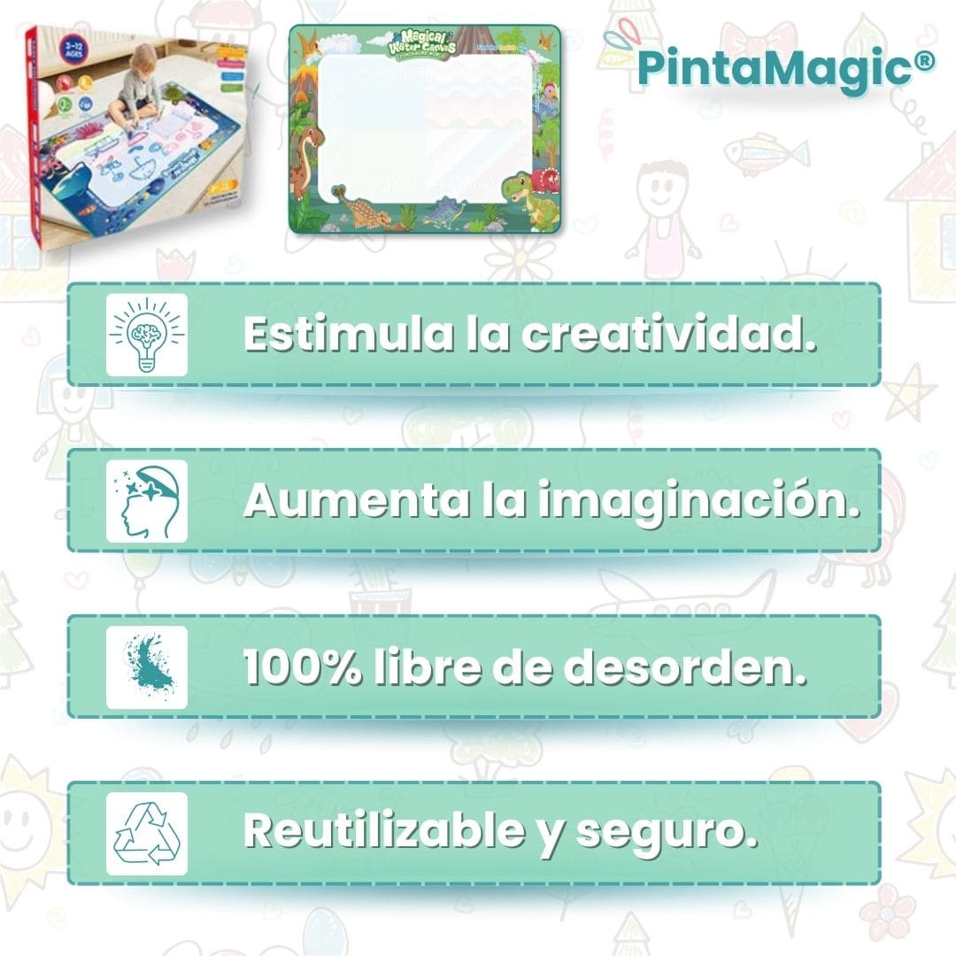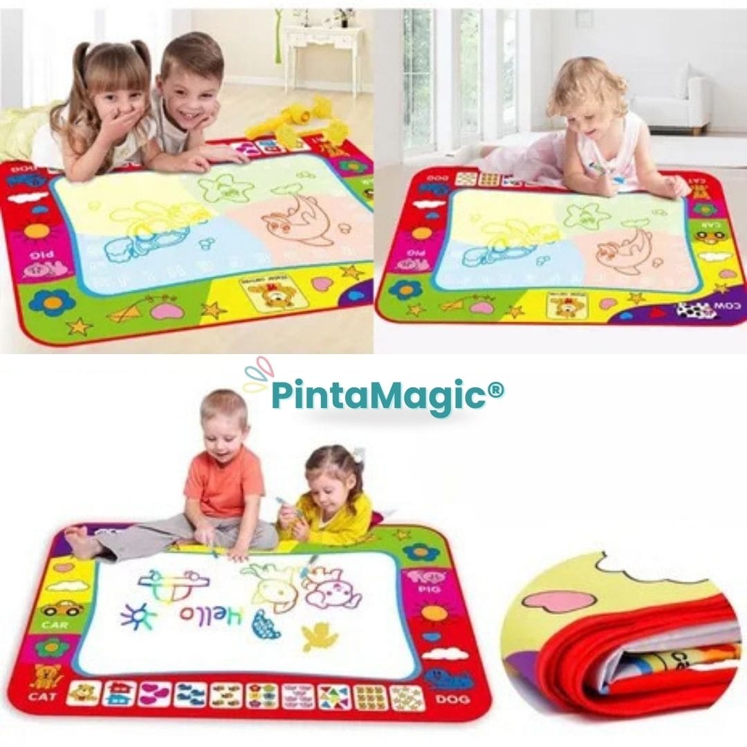 PintaMagic® cuenta con una superficie innovadora que responde solo al agua, permitiendo que los niños dibujen sin usar tinta ni pinturas. Todo desaparece al secarse, dejando el tapete listo para volver a usarlo una y otra vez. Fabricado con materiales resistentes y duraderos, es completamente libre de toxinas, lo que garantiza un juego seguro y sin desorden. Además, es plegable y portátil, perfecto para llevar la creatividad a cualquier lugar.