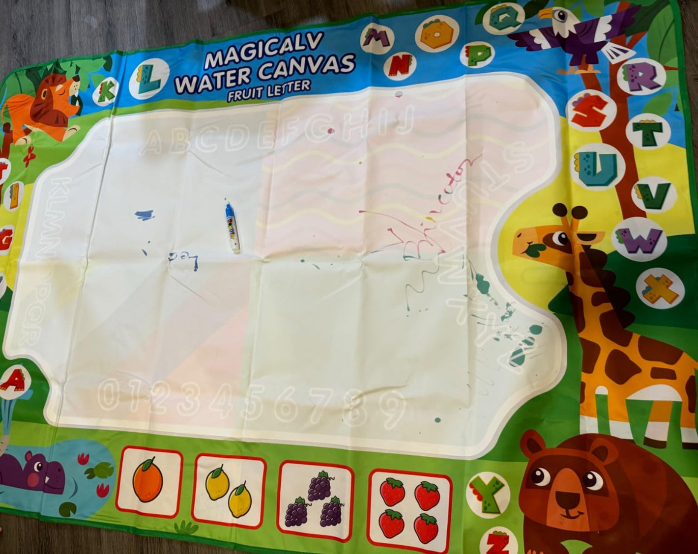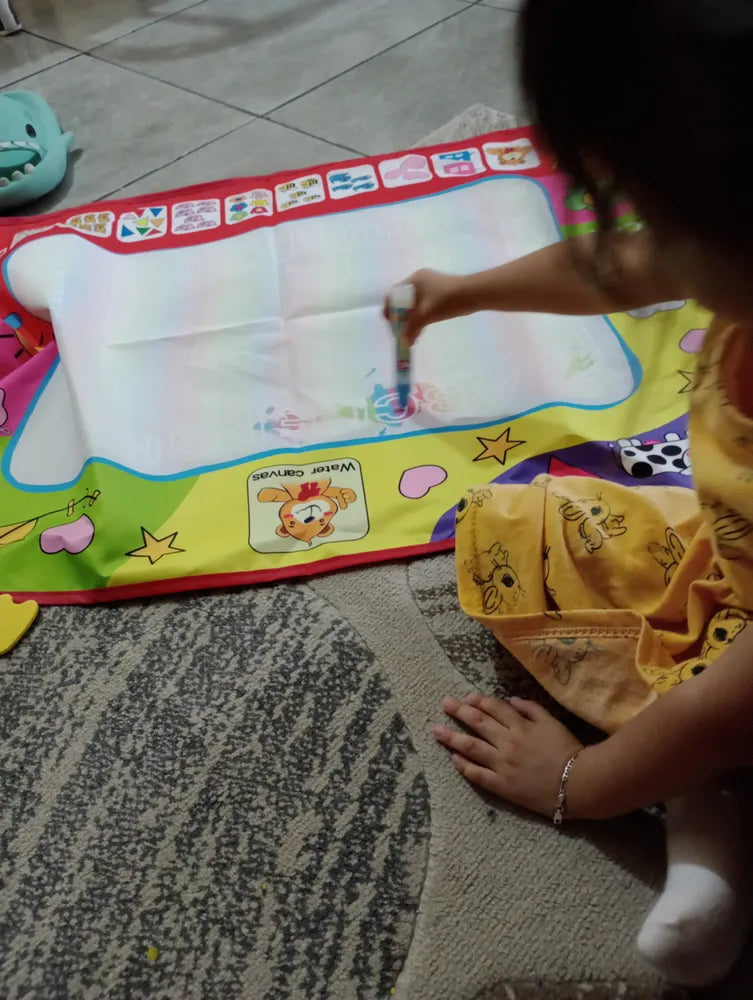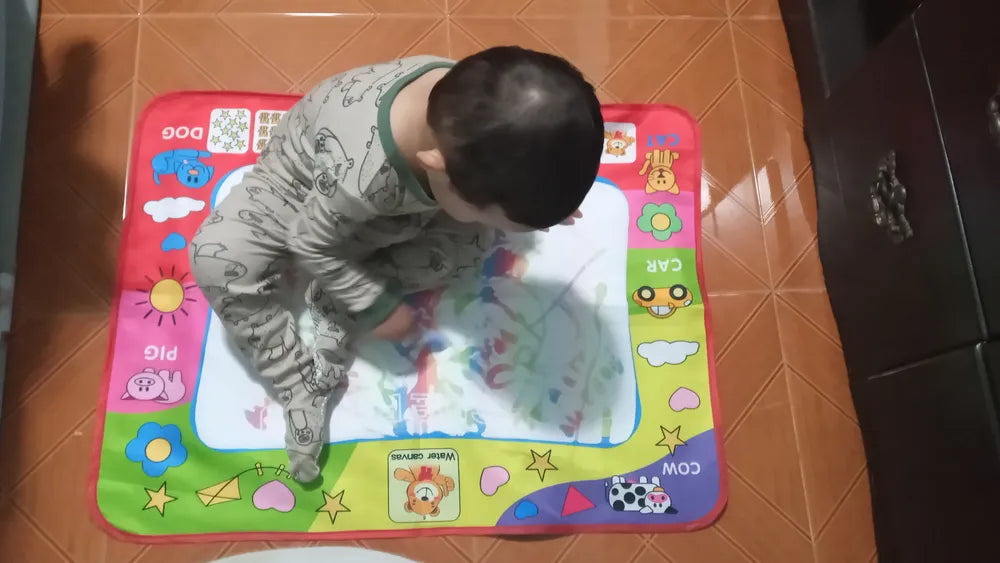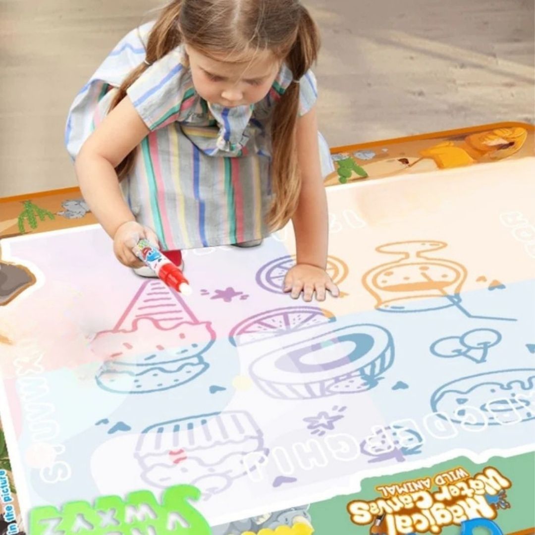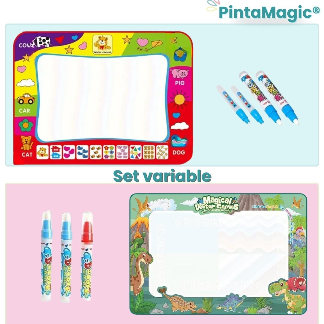 PintaMagic® cuenta con una superficie innovadora que responde solo al agua, permitiendo que los niños dibujen sin usar tinta ni pinturas. Todo desaparece al secarse, dejando el tapete listo para volver a usarlo una y otra vez. Fabricado con materiales resistentes y duraderos, es completamente libre de toxinas, lo que garantiza un juego seguro y sin desorden. Además, es plegable y portátil, perfecto para llevar la creatividad a cualquier lugar.