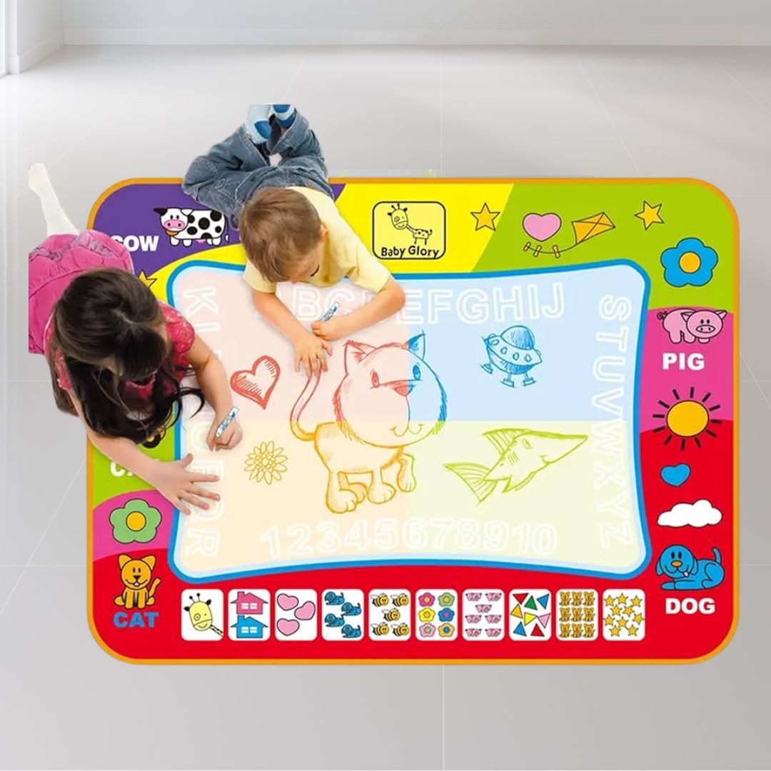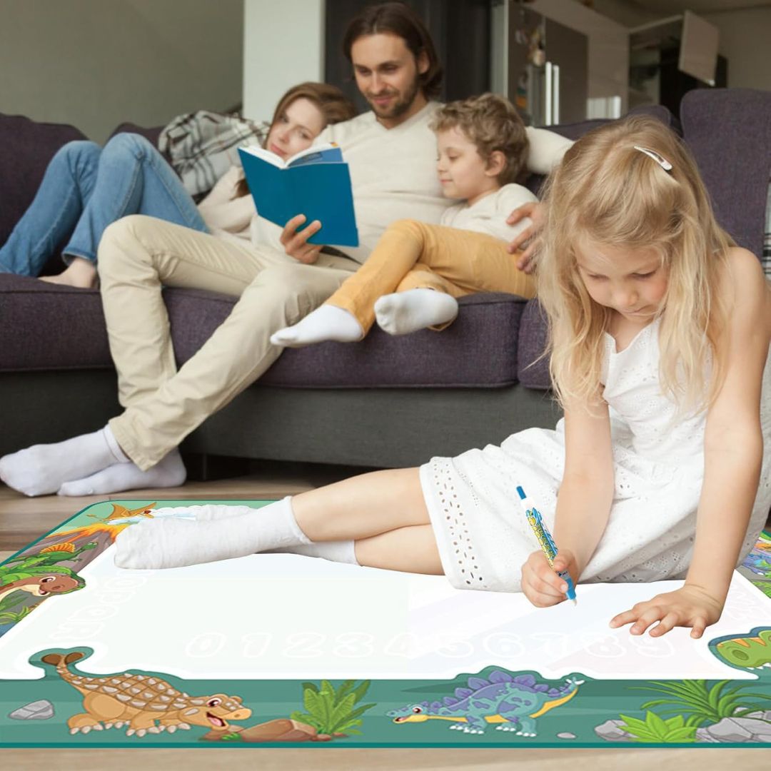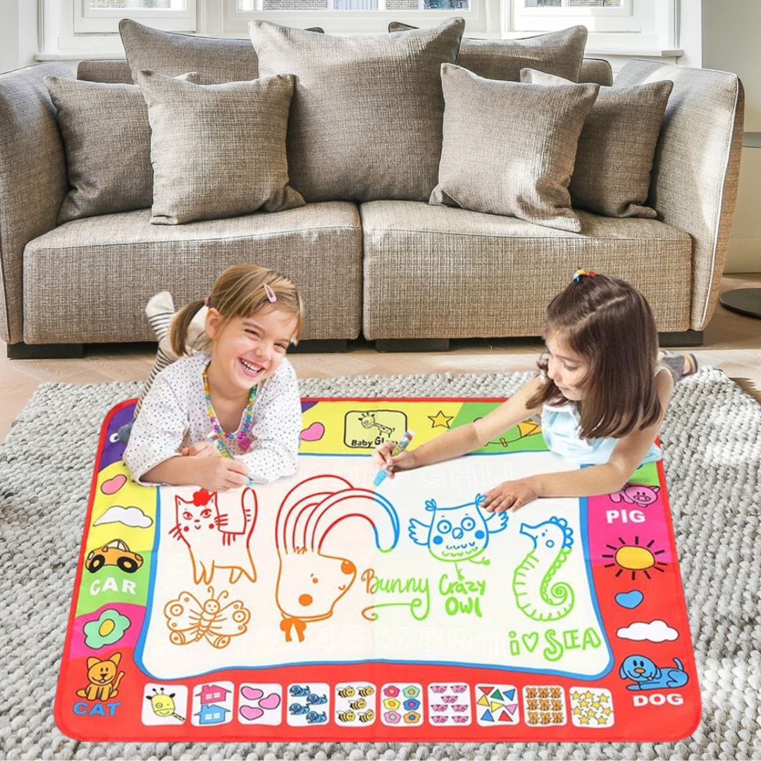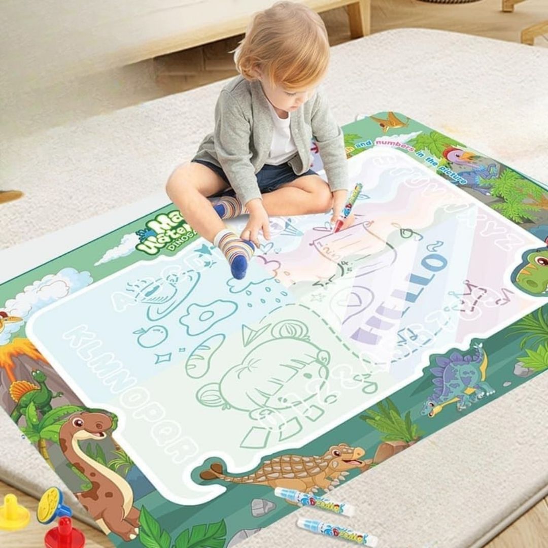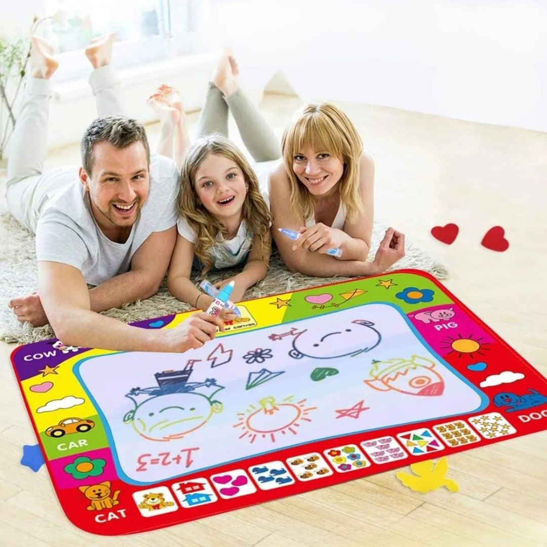 PintaMagic® cuenta con una superficie innovadora que responde solo al agua, permitiendo que los niños dibujen sin usar tinta ni pinturas. Todo desaparece al secarse, dejando el tapete listo para volver a usarlo una y otra vez. Fabricado con materiales resistentes y duraderos, es completamente libre de toxinas, lo que garantiza un juego seguro y sin desorden. Además, es plegable y portátil, perfecto para llevar la creatividad a cualquier lugar.