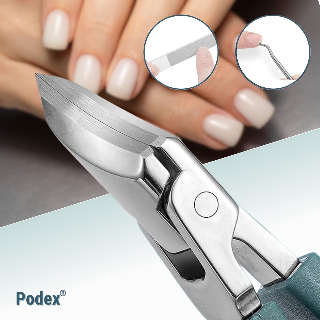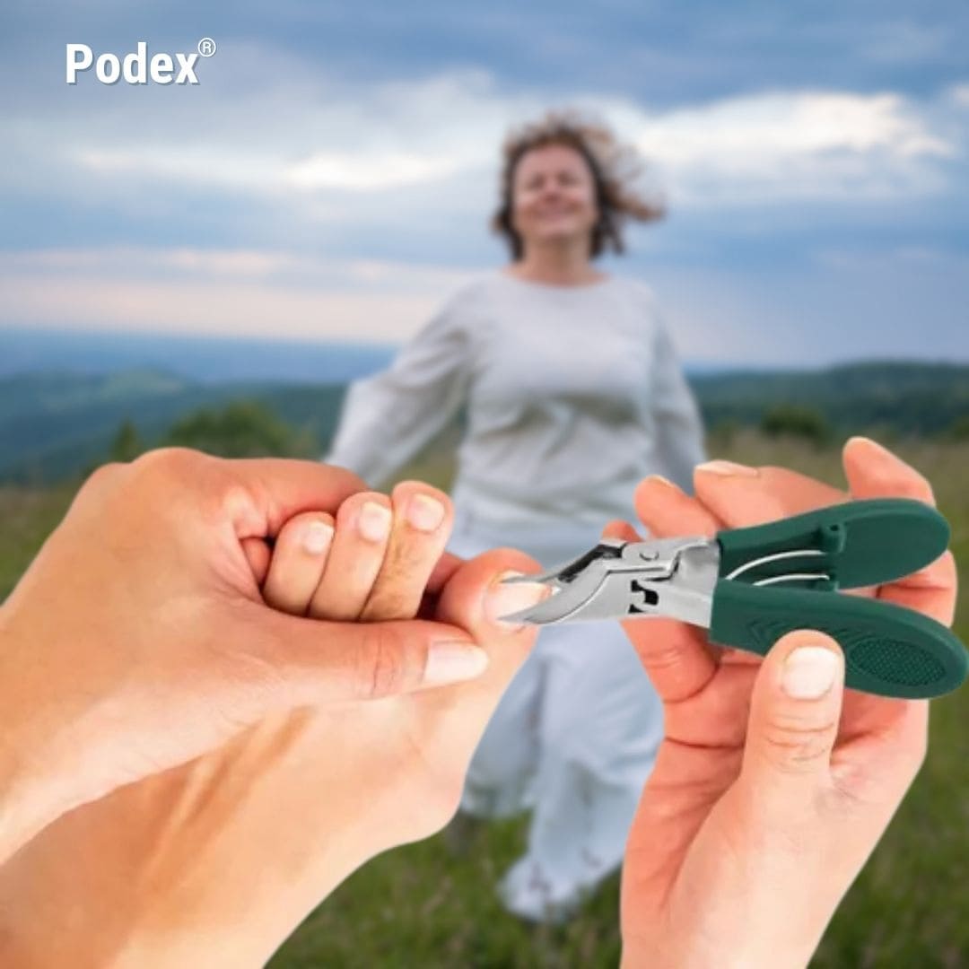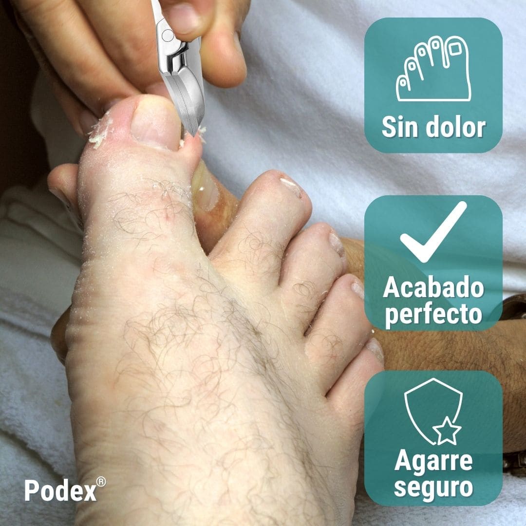 Podex® fue creado para llegar justo a ese punto donde la uña se clava y duele. Este cortaúñas te permite acceder al borde exacto que genera la presión, cortando desde la raíz sin lastimar la piel.