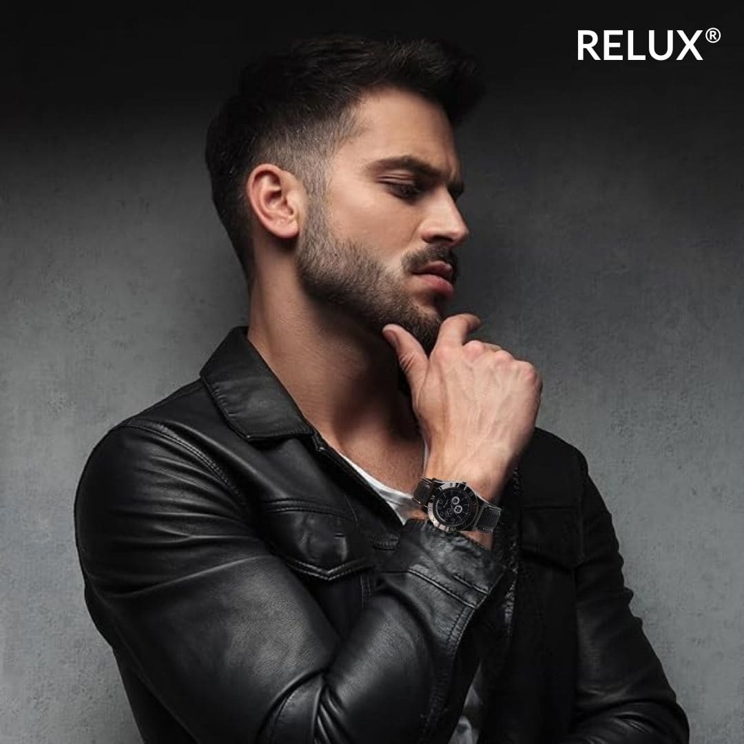 RELUX® transforma tu muñeca en un símbolo de refinamiento, ideal para hombres que saben que el estilo está en los pequeños detalles.