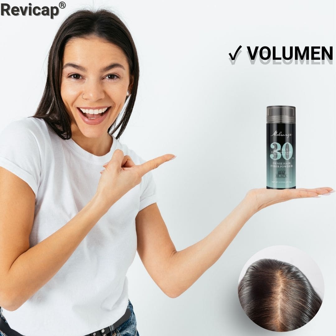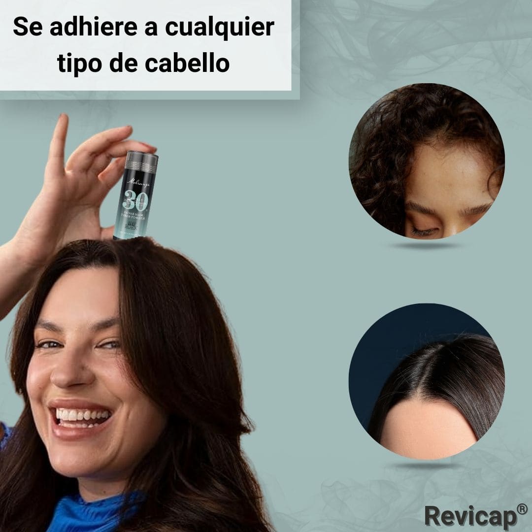 Más que cubrir, redefine tu cabello. Revicap® utiliza microfibras de alta calidad que se integran de forma imperceptible con tu tono natural, engrosando cada hebra al instante y multiplicando el volumen para lograr una apariencia abundante.