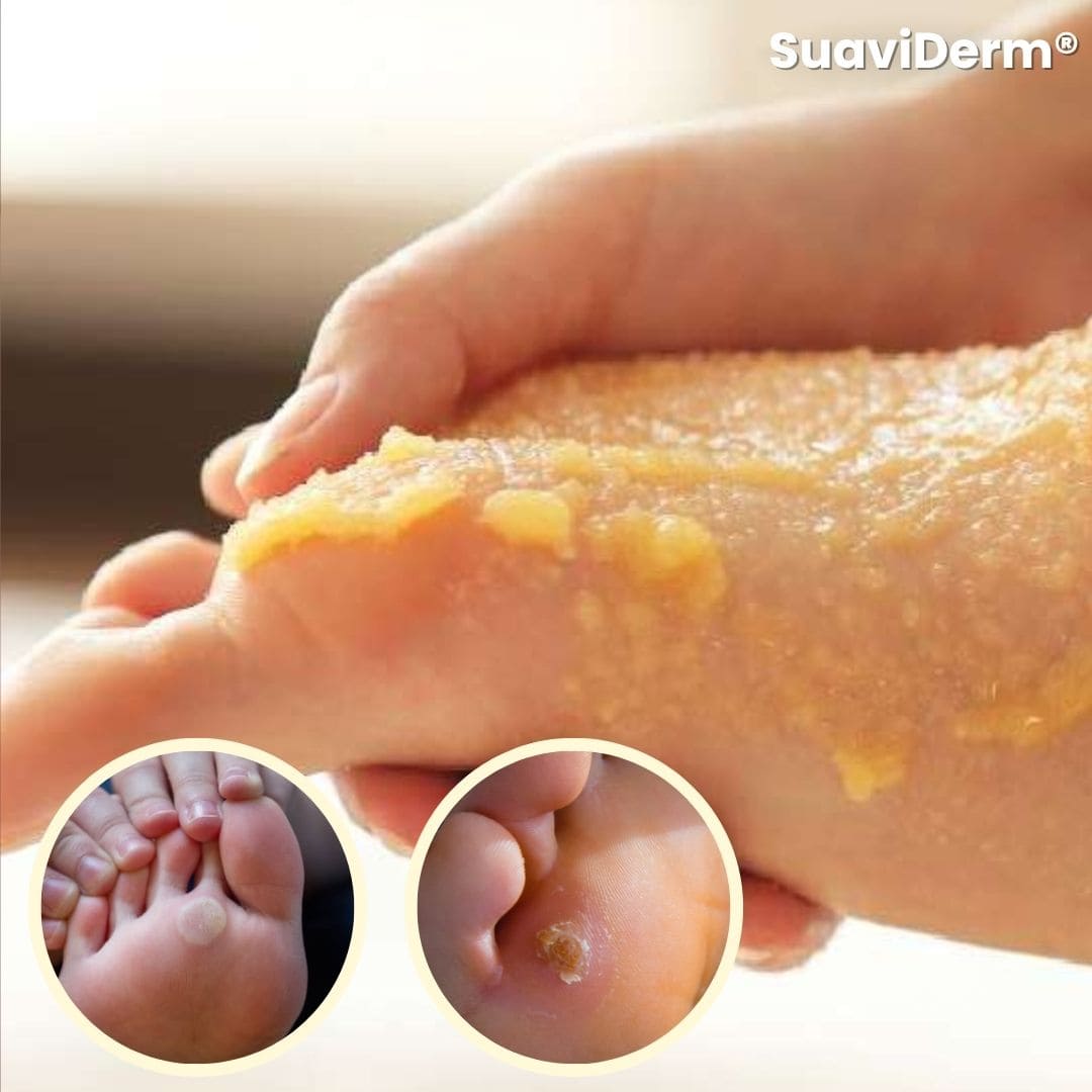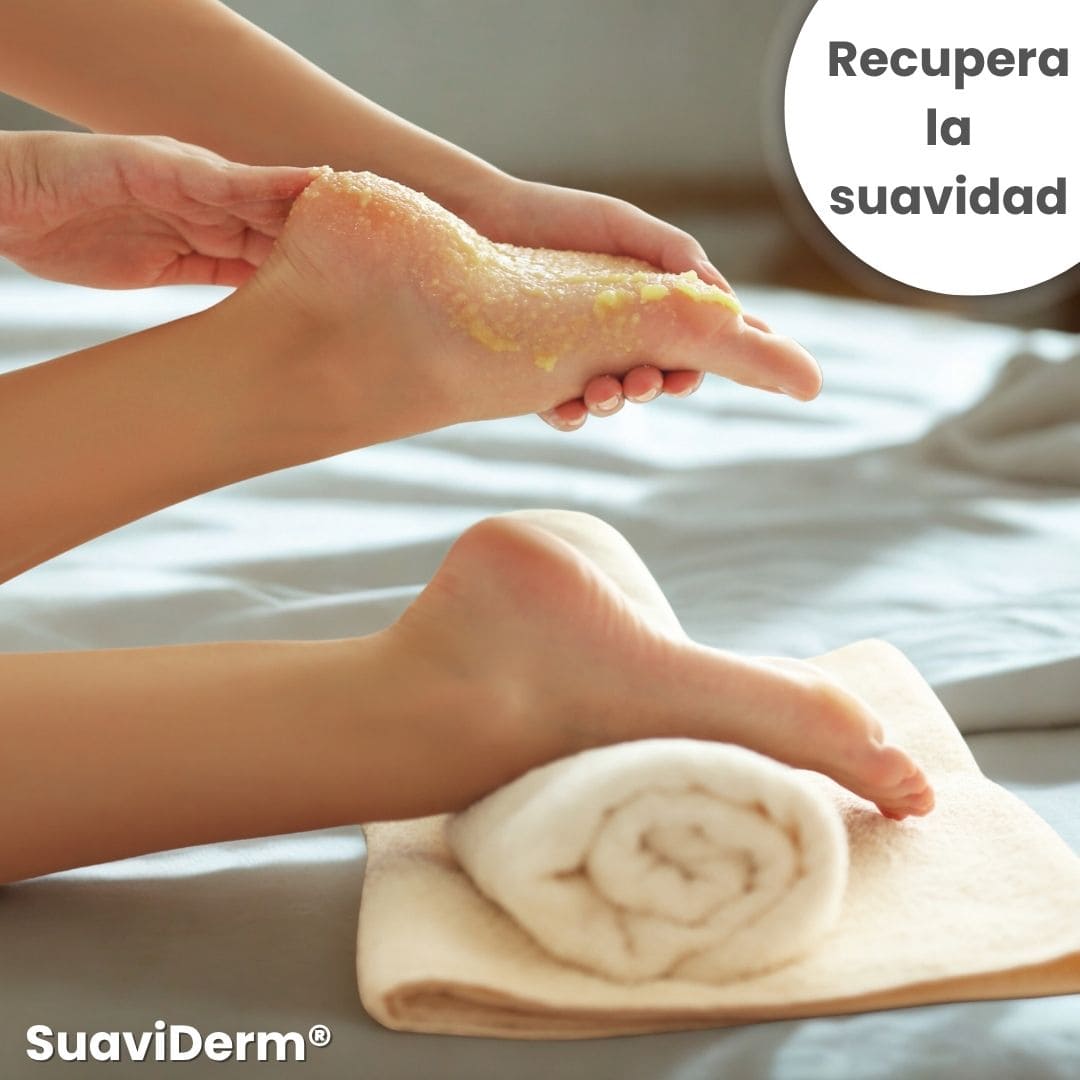 SuaviDerm® está diseñado para tratar profundamente la resequedad en los pies, eliminando las células muertas.