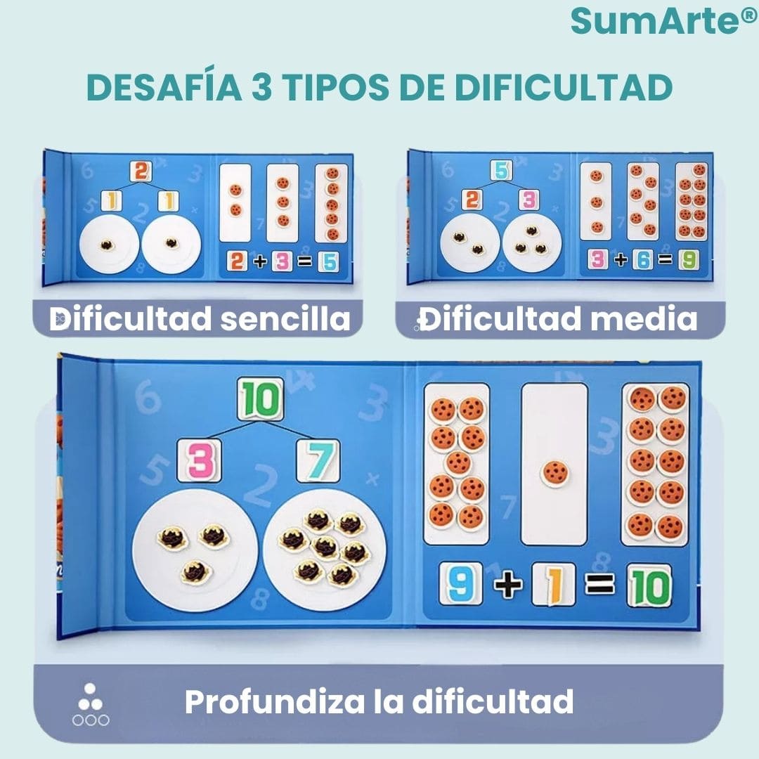 Si las matemáticas son un desafío para tu hijo, SumArte® es la herramienta ideal para ayudarlo a mejorar. Gracias a su diseño interactivo, podrá experimentar con números, probar diferentes combinaciones y encontrar las respuestas correctas por sí mismo, lo que fortalece su razonamiento lógico y su memoria. A través de la manipulación de piezas magnéticas, aprenden sin presión y sin miedo a equivocarse, lo que refuerza su confianza y les permite mejorar sus calificaciones sin esfuerzo.