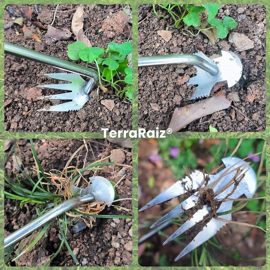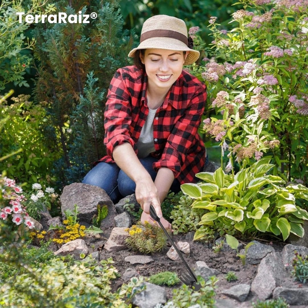 TerraRaiz® no solo funciona bien: está construido para durar. Su fabricación en acero inoxidable de grado profesional lo hace ideal para el uso frecuente y prolongado. No se oxida, no se rompe, y se siente firme en la mano. Porque tu jardín merece herramientas a la altura.