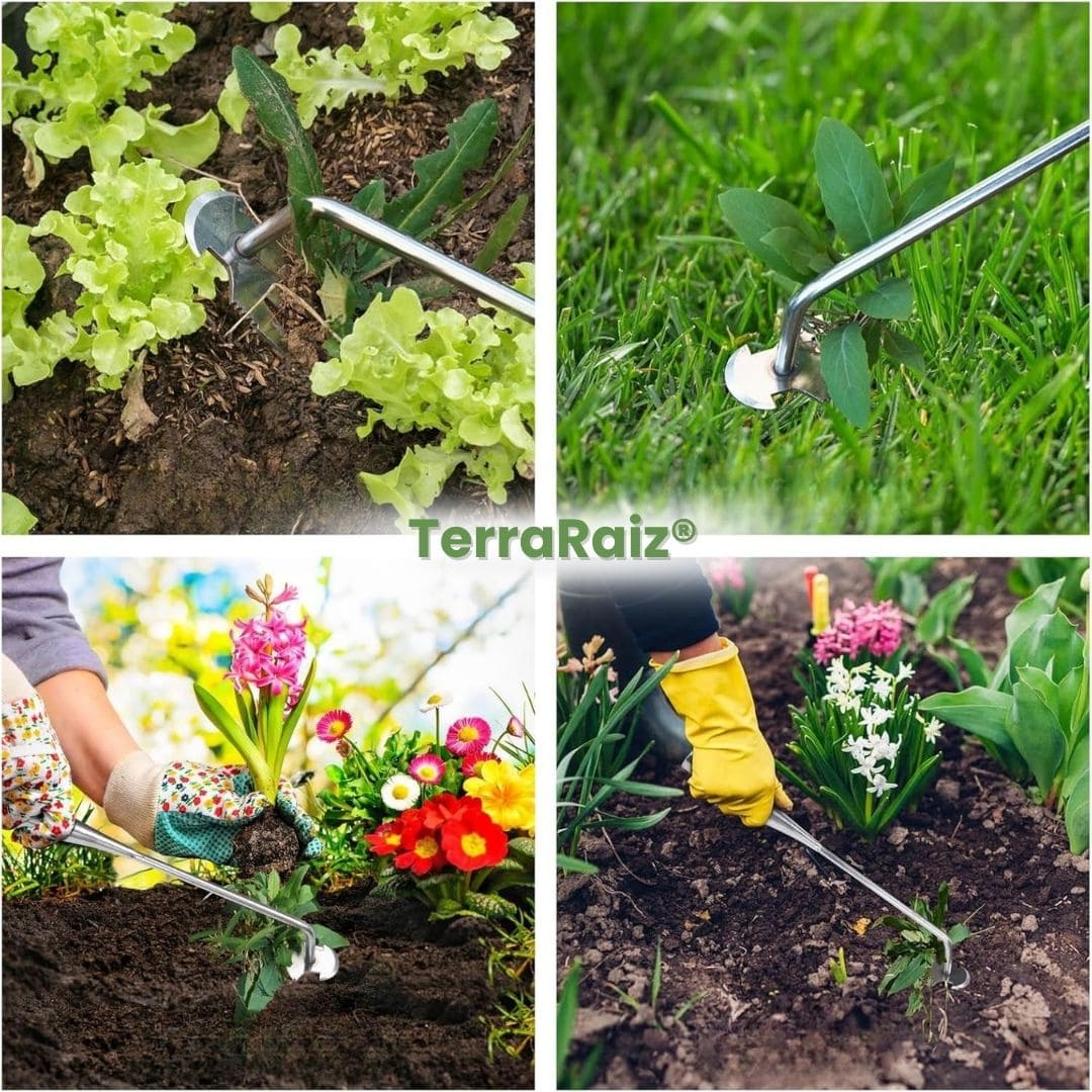 TerraRaiz® está diseñado para llegar justo al origen del problema, extrayendo la raíz completa de forma precisa. Evitando que la hierba regrese y mantienes tu jardín limpio por mucho más tiempo, con menos esfuerzo.