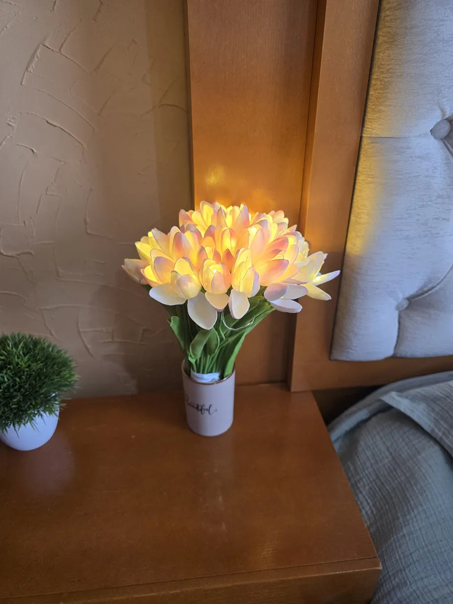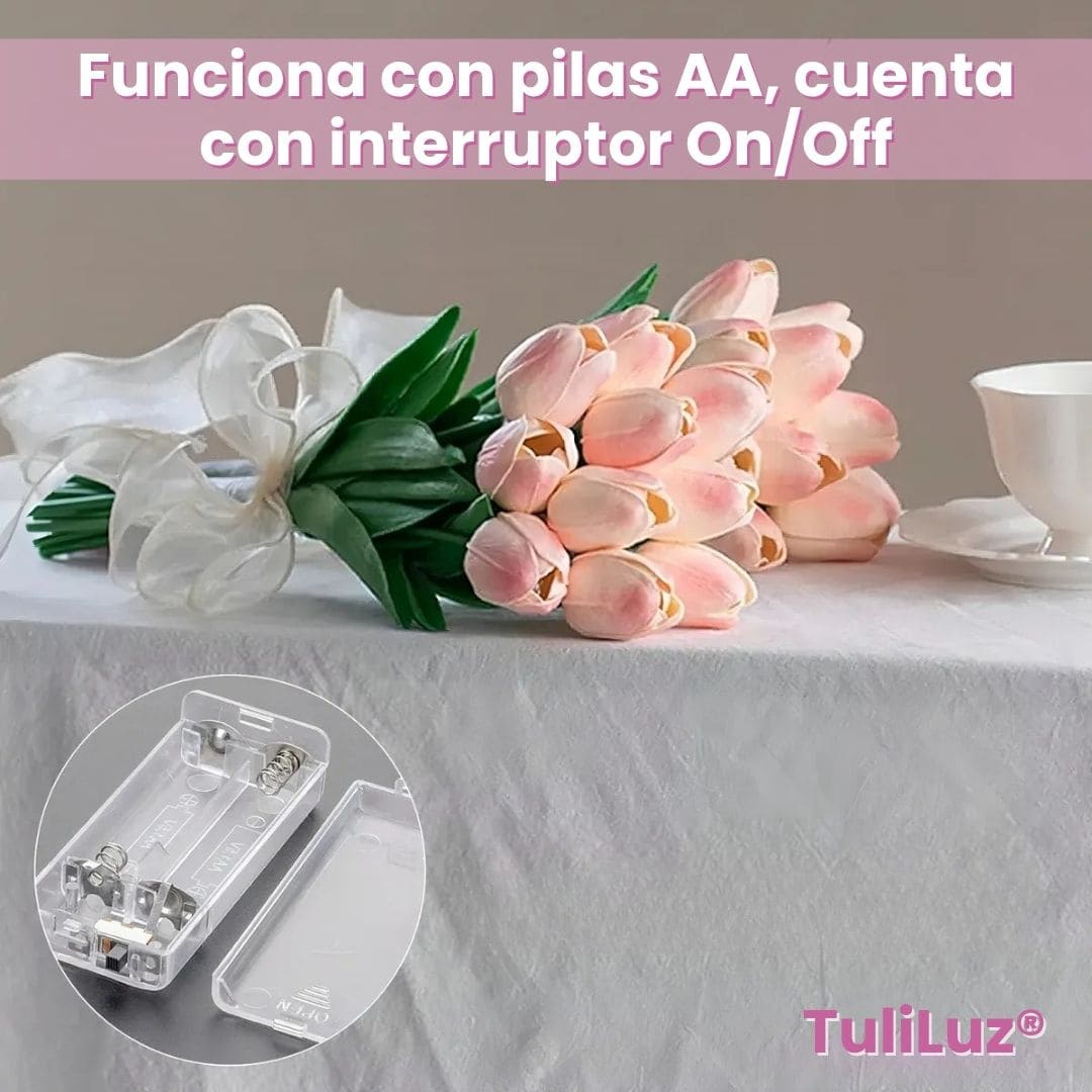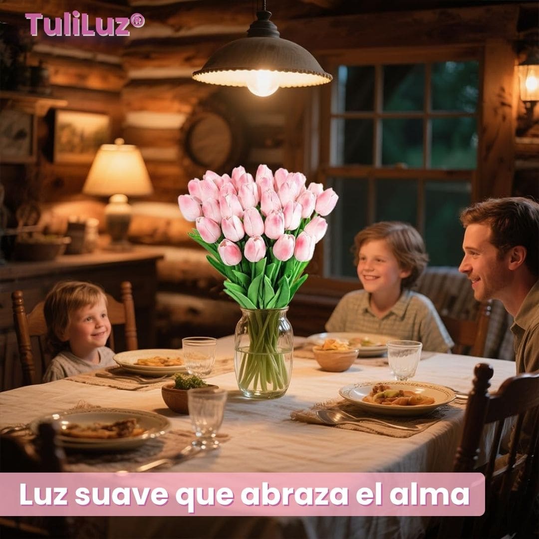 Cada tulipán ilumina con un tono natural que relaja la vista y crea una atmósfera íntima, elegante y profundamente tranquila.