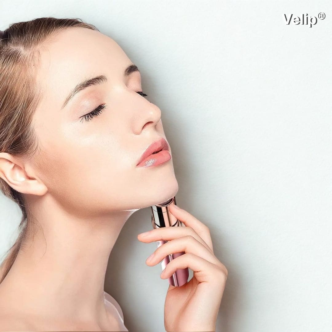 Con Velip® elimina el vello facial de forma suave y con precisión, sin irritaciones y con la facilidad de un labial. Luciendo tu piel más suave y tu rostro más seguro.